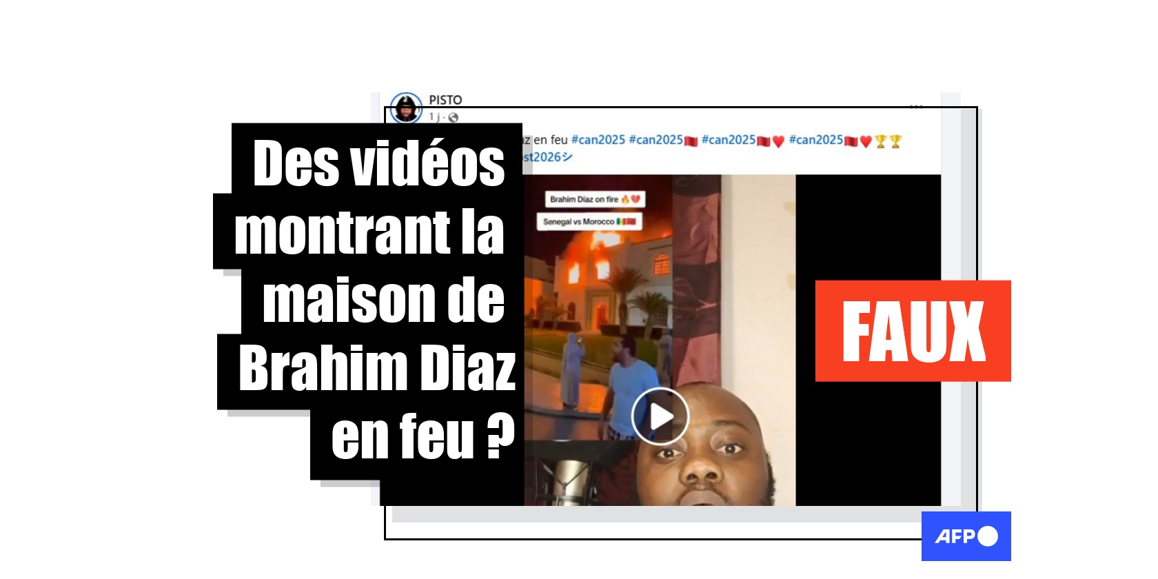 Le Sénégal a remporté dimanche 18 janvier la finale de la Coupe d’Afrique des Nations (CAN), lors d’un match très tendu et aux multiples rebondissements. Le Maroc a failli remporter la compétition en bénéficiant d’un pénalty à une minute de la fin théorique du match. Mais Brahim Diaz, le joueur marocain chargé de marquer ce but décisif, a manqué son coup. Depuis, des publications sur les réseaux sociaux affirment, vidéos à l’appui, que des supporters marocains mécontents auraient mis le feu à la maison du joueur. Mais c’est faux : les images de l’incendie ont été générées par IA. Par ailleurs, aucune source crédible ne fait état d’un incendie au domicile du footballeur.